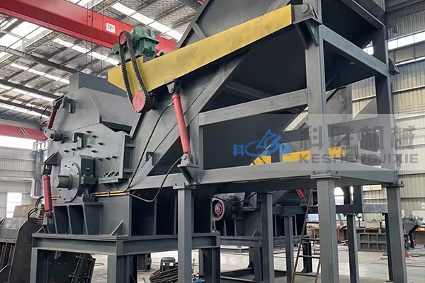 1.廢鋼鐵原料由秤式輸送機(jī)輸送到金屬破碎機(jī)進(jìn)料口的斜面上,然后通過雙軸或單軸低速旋轉(zhuǎn),利用刀頭對物料進(jìn)行切割、切斷、撕裂和牽引。傳動(dòng)軸上的螺旋齒刀盤交錯(cuò)排列,使物料進(jìn)入后同時(shí)受到擠壓、撕裂和剪切,從而破碎各種金屬材料。