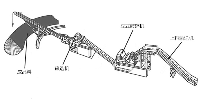 火燒鐵破碎機(jī)生產(chǎn)線由進(jìn)料輸送機(jī)、立式破碎機(jī)、皮帶輸送機(jī)、磁選機(jī)、除塵、操作柜組成。從立式破碎機(jī)出來的破碎物,經(jīng)過皮帶輸送機(jī)、磁選機(jī),把鐵金屬和雜質(zhì)分離開,并由各自輸送機(jī)送出歸堆。