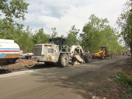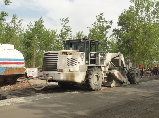 2012年3月,我公司生產(chǎn)的一臺600馬力WR2300L路面冷再生機(jī)在河南省長葛市S325省道進(jìn)行路面冷再生施工,該路段為省道,面層為6-7公分的瀝青混凝土,穩(wěn)定層為水泥碎石穩(wěn)定層。業(yè)主對該路段的大修要求是用銑刨機(jī)將瀝青面層銑刨清運(yùn),然后用冷再生機(jī)對下面的水泥穩(wěn)定土基層進(jìn)行就地冷再生施工。在精心組織施工下,一臺我公司生產(chǎn)的WR2300L路面冷再生施工質(zhì)量穩(wěn)定,深獲業(yè)主好評,綜合評價勝過另一標(biāo)段的國外同類機(jī)型,在施工后期,業(yè)主只留一臺我公司的WR2300L冷再生機(jī)施工作業(yè),并承諾在以后的工程中繼續(xù)使用我公司生產(chǎn)的WR2300L路面冷生機(jī)。在實(shí)際的路面冷再生施工中獲得國內(nèi)公路施工單位的如此贊譽(yù),使我公司廣大員工深受鼓舞,這是我公司多年勤奮努力的結(jié)果,追趕國外先進(jìn)公司路面冷再生機(jī)的性能,這是我公司多年的目標(biāo),現(xiàn)在這一目標(biāo)已部分實(shí)現(xiàn),國外先進(jìn)機(jī)器的性能并不是國內(nèi)生產(chǎn)企業(yè)做不到的,目前我公司生產(chǎn)的600馬力冷再生機(jī),在機(jī)器的綜合施工效率、噴水計(jì)量精度、銑刨鼓的耐磨性上均已處于國內(nèi)領(lǐng)先水平。我們深信辛勤的努力可以獲得進(jìn)步的回報,我們也將繼續(xù)努力,開發(fā)更先進(jìn)的機(jī)型,努力回報用戶,回報社會。