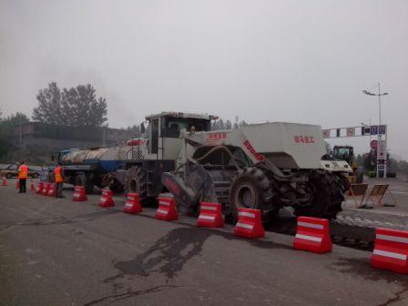 國道G108臨汾段今年開始冷再生大修施工,該路段為公路干線,路基及路面強(qiáng)度很高,其中部分路段,比如靠近收費(fèi)站的路段,經(jīng)過多次維修,采用了改性瀝青鋪設(shè)面層,路面強(qiáng)度很高,即使是進(jìn)口機(jī)械施工也不輕松,導(dǎo)致機(jī)器工作速度慢,刀具磨損損耗量明顯增大等。該路段共有六個標(biāo)段,施工的主要設(shè)備冷再生機(jī)以進(jìn)口品牌為主。由于工期緊張,先后有兩個標(biāo)段調(diào)用了我公司生產(chǎn)的600馬力WR2300E,WR2300L冷再生機(jī)。我公司冷再生機(jī)面對如此高強(qiáng)度路面冷再生,機(jī)器展示了國產(chǎn)機(jī)械的優(yōu)異性能,通過了考驗,贏得了施工方的認(rèn)可。參于施工的兩臺600馬力冷再生機(jī),均安裝了我公司自行生產(chǎn)的可拆卸刀庫重型轉(zhuǎn)子,很好地體現(xiàn)了可拆卸刀庫重型轉(zhuǎn)子在高強(qiáng)度冷再生施工中的適應(yīng)性。