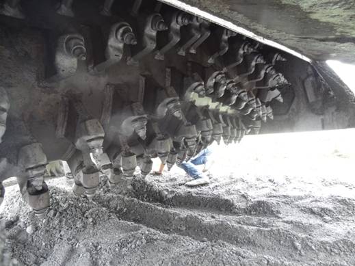 2014年6月,我公司冷再生機首次進入四川施工。先進入四川的是一臺600馬力WR2300L冷再生機,由河南隆裕工程公司于2011年向我公司購買,已工作了近四年,機器狀態(tài)仍然很好。冷再生工程為郫縣唐太路道路改造工程,主要路基的大修采用冷再生工藝。唐太路為水穩(wěn)路基結(jié)構(gòu),與華東等大部分地區(qū)不同的是路基下有大量的鵝卵石,這會對銑刨轉(zhuǎn)子造成很大的磨損,如果機器不是裝備了可折卸刀庫重型轉(zhuǎn)子,這個工程是不可能做下去的,刀具的損耗很大,齒套也有較大的磨損。施工隊伍在高經(jīng)理的帶領(lǐng)下,無論是施工速度還是施工質(zhì)量均獲得管理方的好評,打消了承包方最初對國產(chǎn)設備的疑慮。