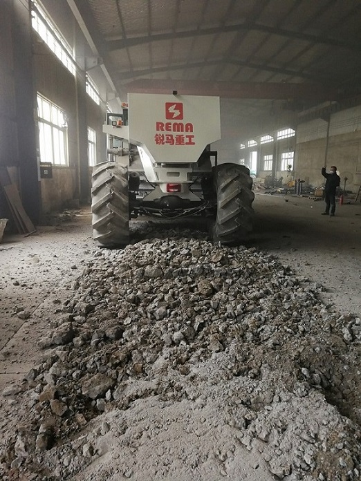 2017年歲末,我路拌公司研發(fā)的新產(chǎn)品RS600水泥路面破碎機(jī)樣機(jī)下線,并成功完成了水泥路面的破碎試驗(yàn),試驗(yàn)的結(jié)果讓開發(fā)人員驚喜,實(shí)際工作效果超出預(yù)期,報(bào)廢的車間水泥路面強(qiáng)度雖然高,但破碎機(jī)工作穩(wěn)定,堅(jiān)硬的水泥路面輕松破碎。
