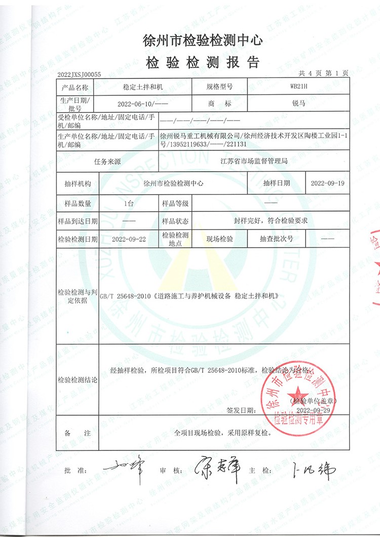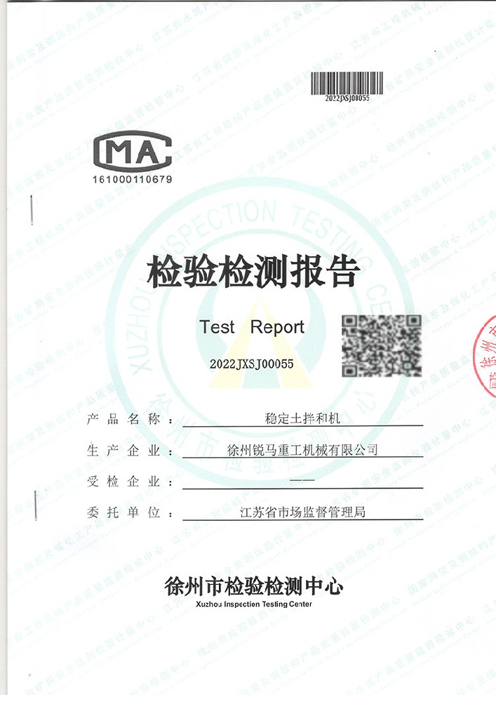受江蘇省市場(chǎng)監(jiān)督管理局委托,徐州市檢驗(yàn)檢測(cè)中心近期對(duì)我公司產(chǎn)品穩(wěn)定土拌和機(jī)做了整機(jī)檢測(cè)。